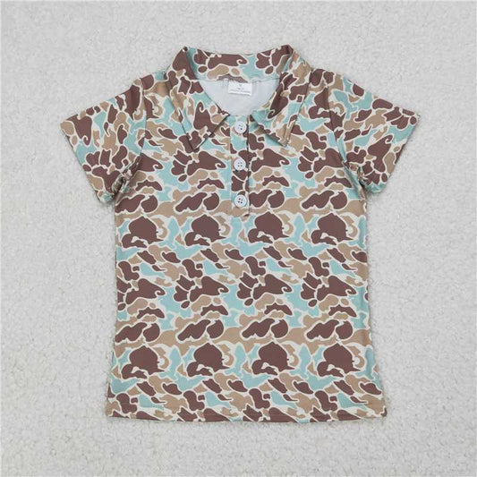 X12.9 BT1420 Brown-green camouflage beige fan-shaped baseball short-sleeved top
