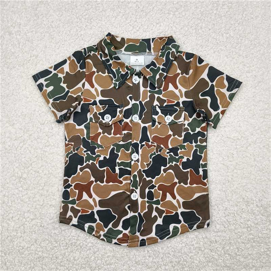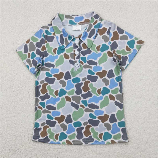 X12.9 BT1498 Carnival Camouflage Button-Down Collar Short-Sleeve Top