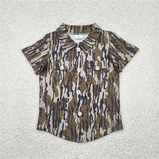 X12.8 BT1425 Camouflage Brown-Green Fan Baseball Short-Sleeve Shirt