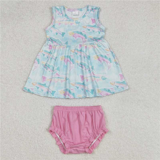 4.7 GBO0464 Fish pattern blue sleeveless pink briefs set