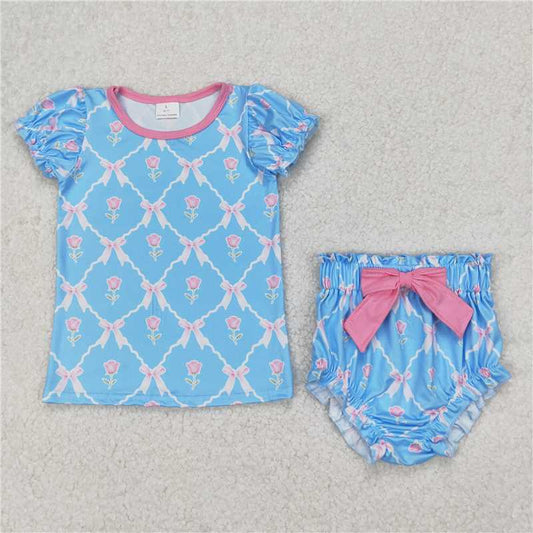 4.7 GBO0461 Blue short-sleeved briefs set with flower and bow pattern