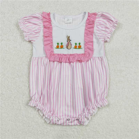 3.5 SR2144 Embroidered carrot rabbit lace pink striped short-sleeved jumpsuit