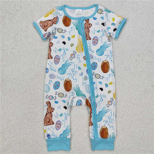 3.18 SR2713 Easter bunny egg candy blue and white zip-up short-sleeved jumpsuit