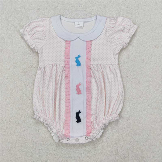 3.17 SR2545 Embroidered Easter bunny pink polka dot lace doll collar white short-sleeved jumpsuit