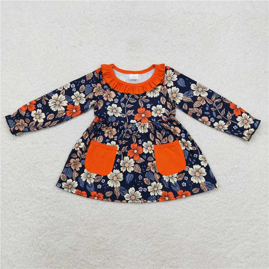 GT0691 Navy blue long-sleeved top with orange floral lace pockets