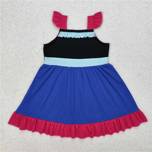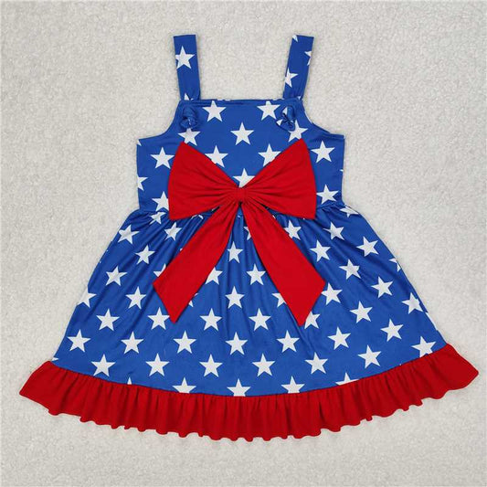 6.23 GSD2534 Embroidered i love dad pink striped bow pattern flowers and leaves blue sleeveless dress