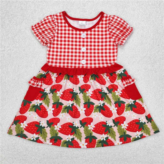6.12 GSD2153 Embroidered Apple Red Plaid Lace Blue Fly Sleeve Dress