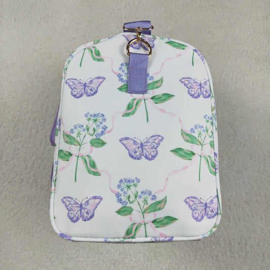 4.19 BA0293 Flowers, leaves, butterflies, purple lace, white gym bag
