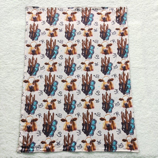 BL0080 Cow head geometric pattern blue and brown plaid baby blanket