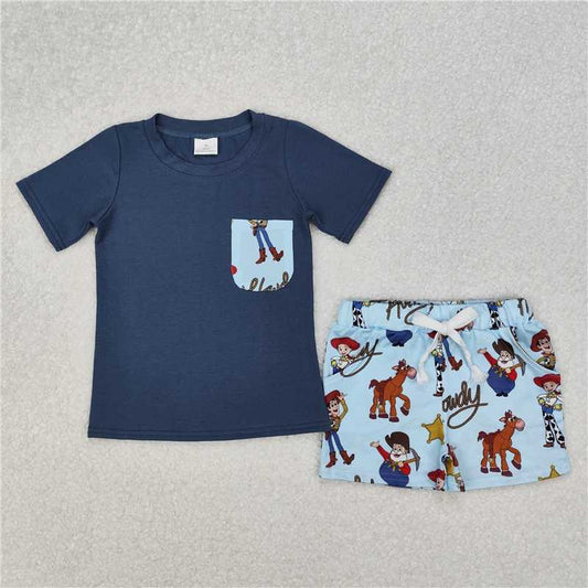 3.10 BSSO1213 howdy Toy Story pocket blue short-sleeved shorts set