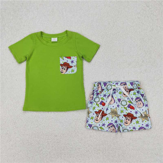 3.25 BSSO1370 Star Toy Story Pocket Green Short Sleeve Shorts Set