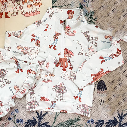 5.10 GT0989 Toy Story Woody Buzz Lightyear white zipper long-sleeved top