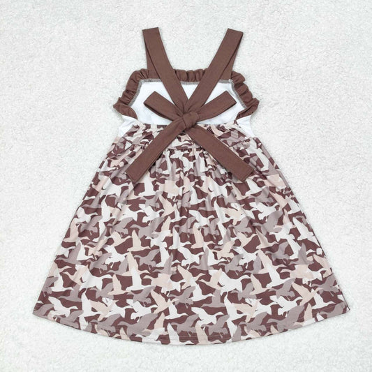 GSD1272 Duck Turkey Deer Brown Lace Bow Sleeveless Dress