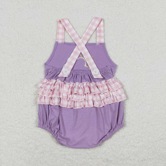 SR1071 Embroidery Pink and white plaid lace purple vest jumpsuit on a rainy and cloudy day