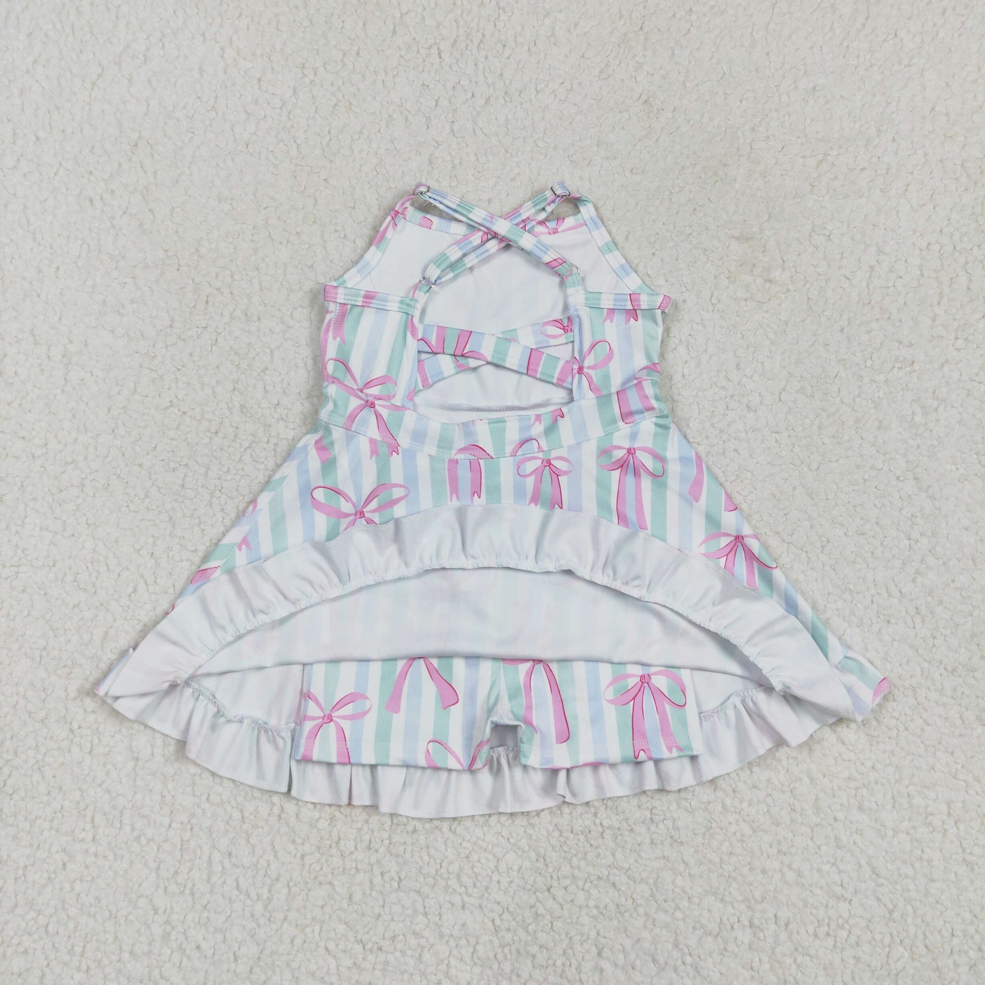 4.17GSD2297 Pink bow pattern blue green striped yoga sleeveless dress