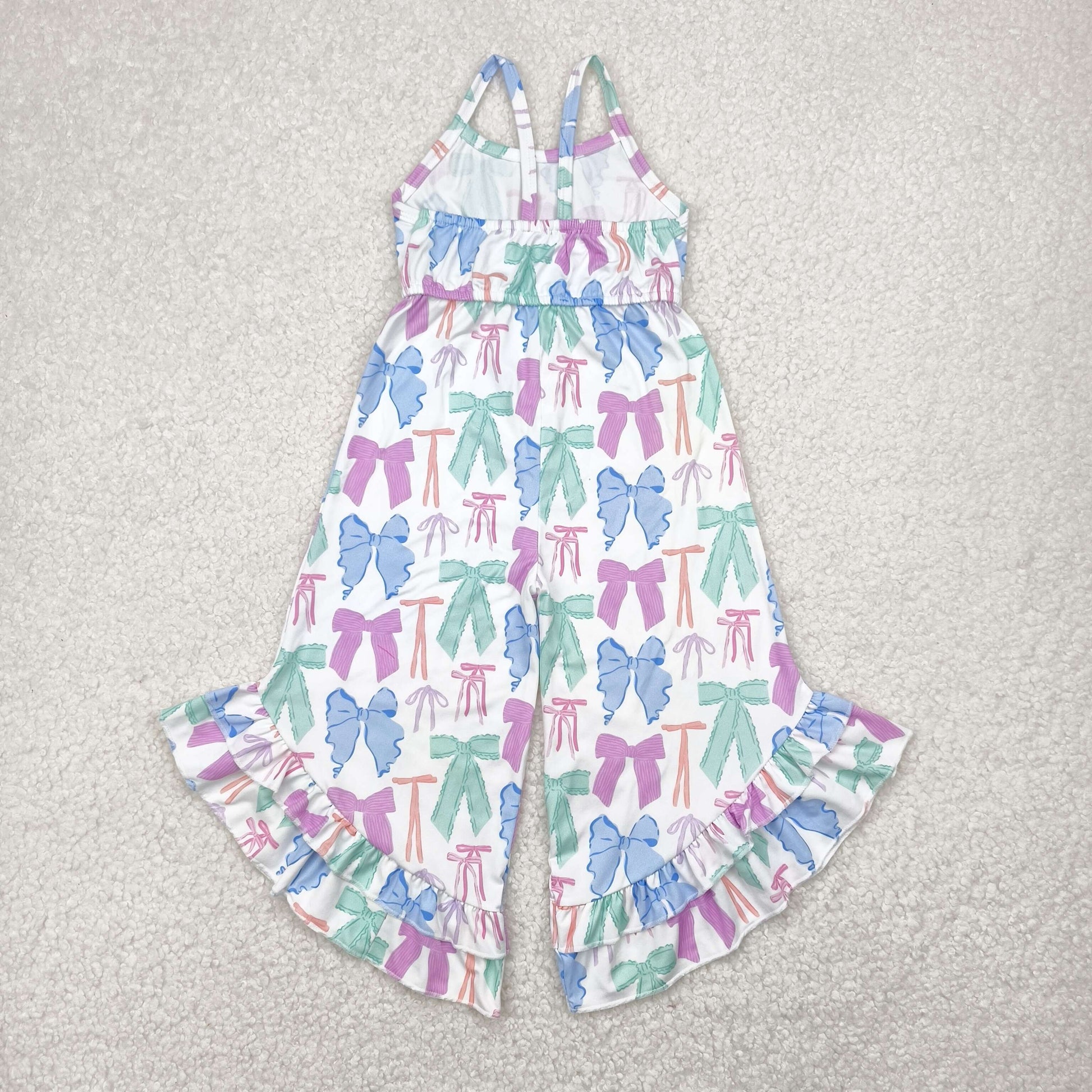 4.24 SR2847 White suspender jumpsuit with colorful bow pattern