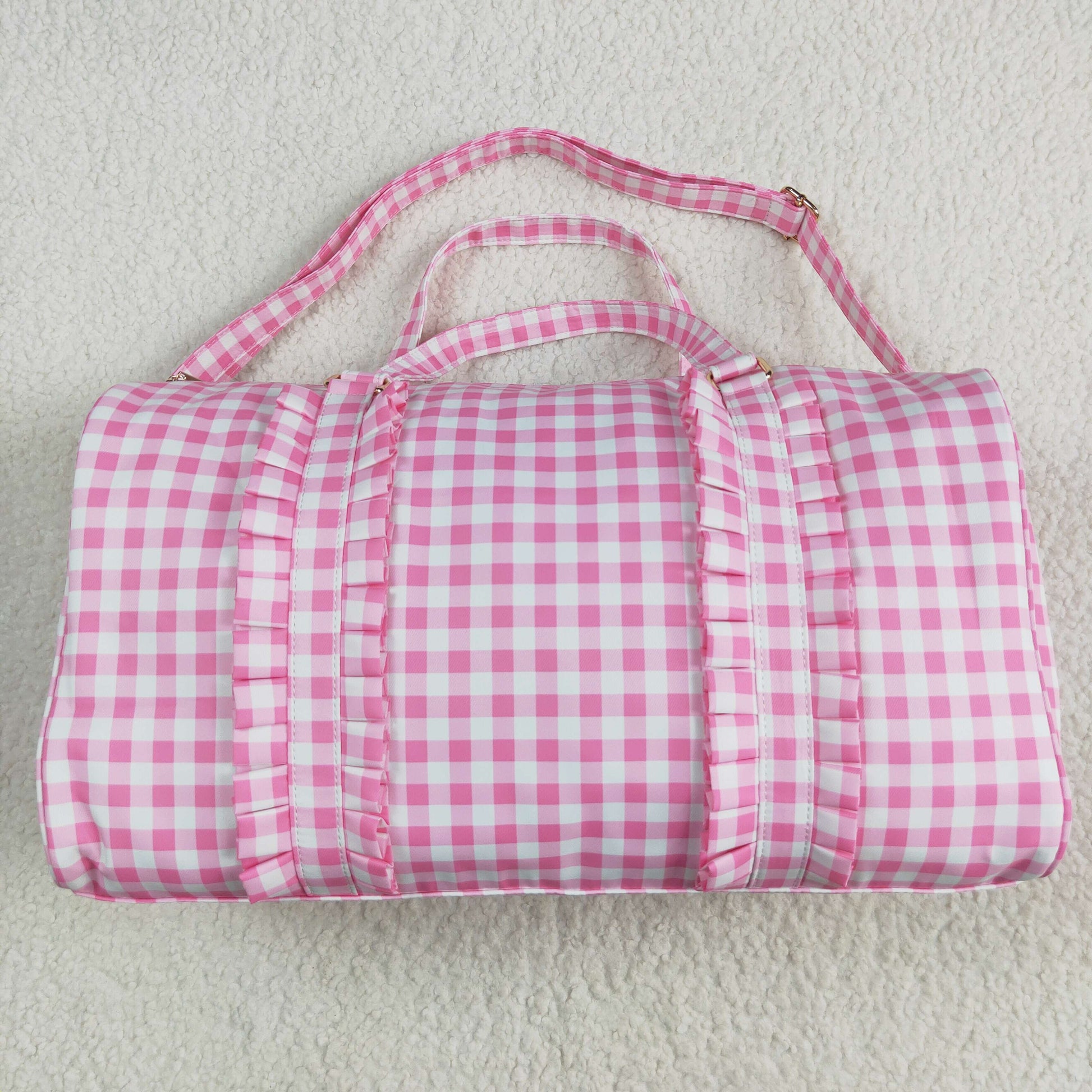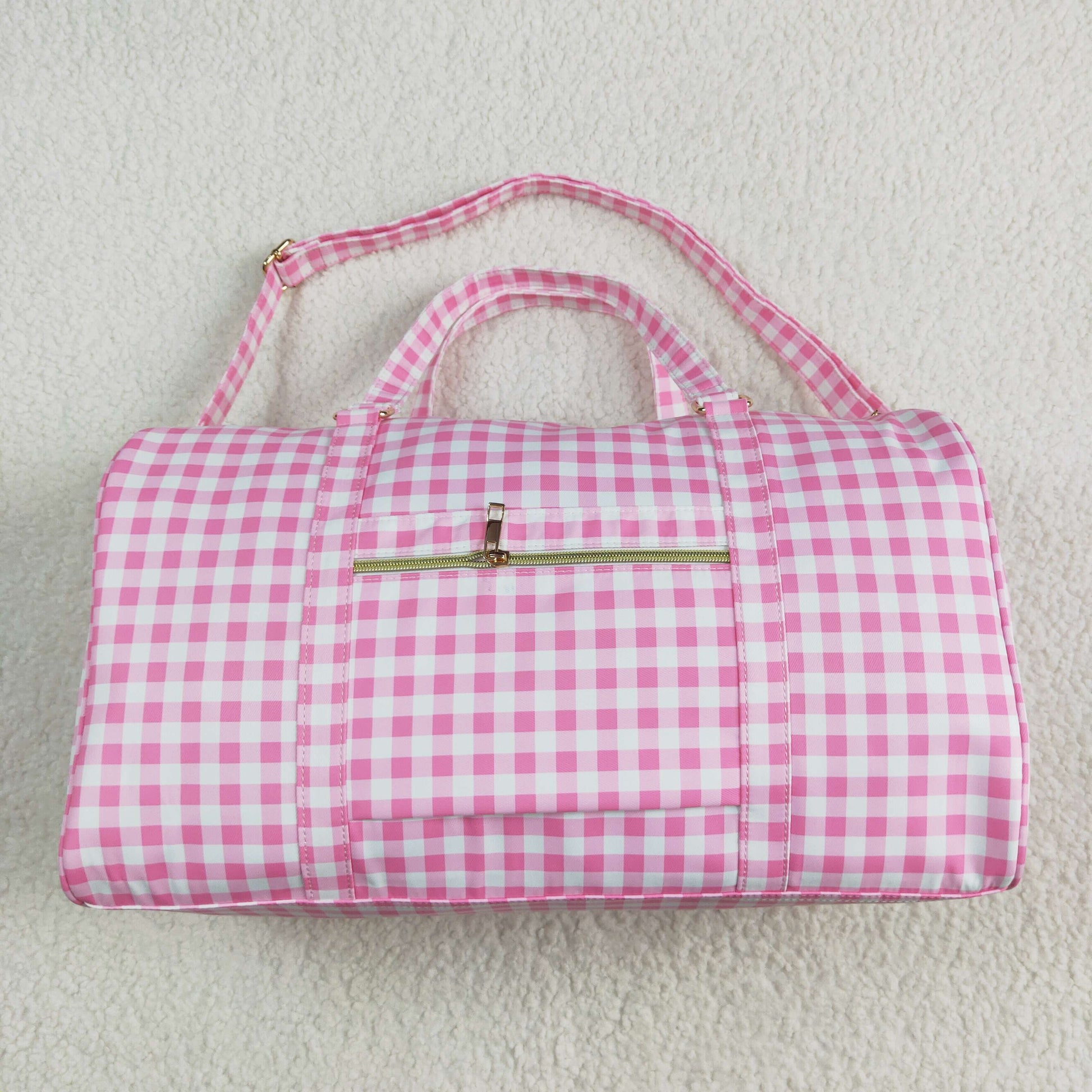 5.1 BA0302 Pink and white plaid lace gym bag